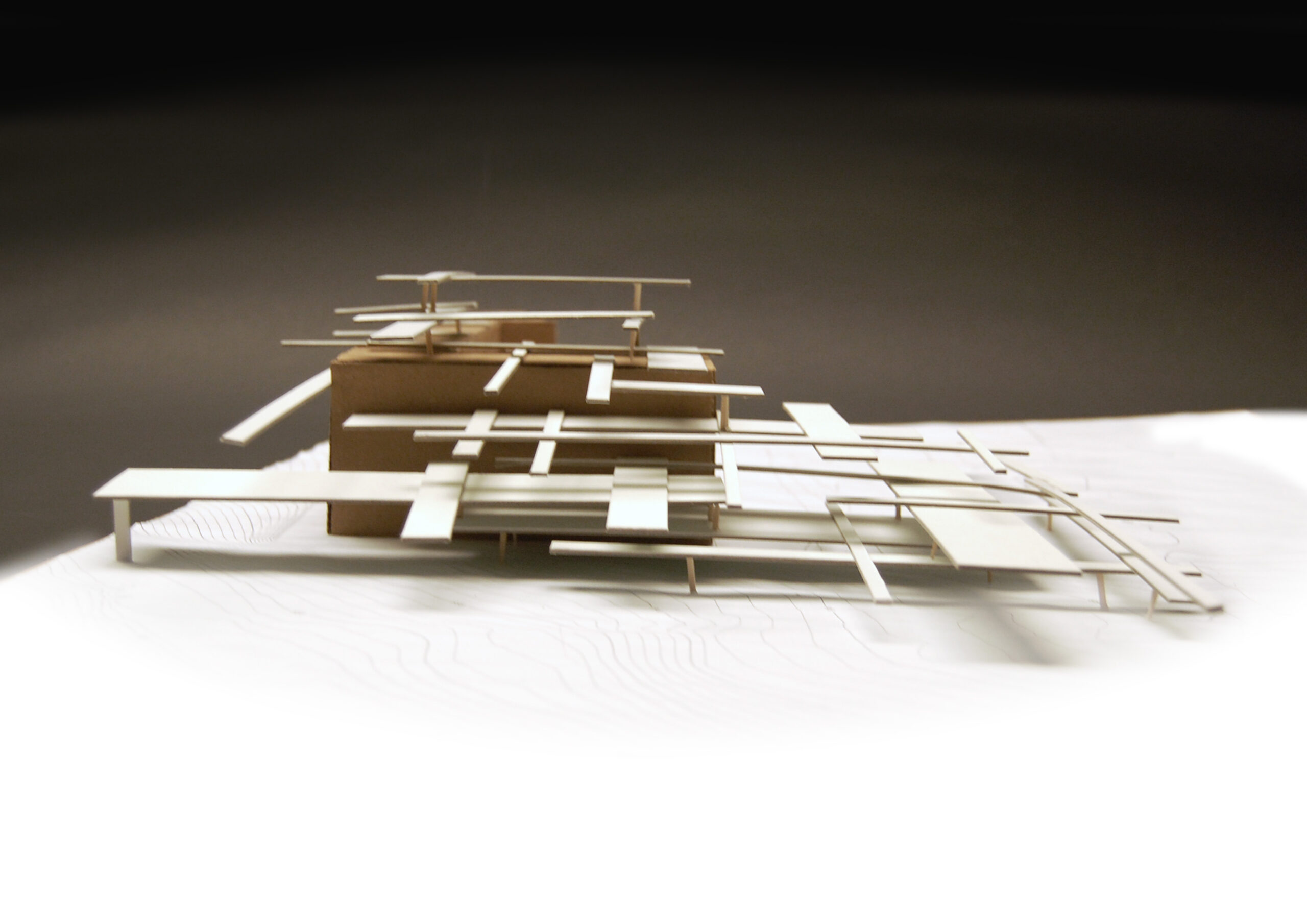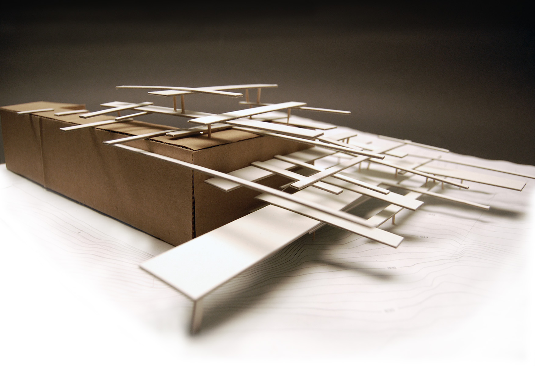 The program of the Wellness Center gathers together spaces for rest, exercise, and reflection. A library and reading rooms provide places for quiet study or informal meetings. A café and lounge open toward terraces, allowing students to gather in a social but relaxed setting. Studios for yoga and pilates, along with pools and saunas, offer light physical activity in close contact with nature. Guest rooms are arranged for visiting lecturers or artists, giving them a modest but comfortable place to stay after events that forefronts the Michigan wilderness.