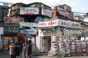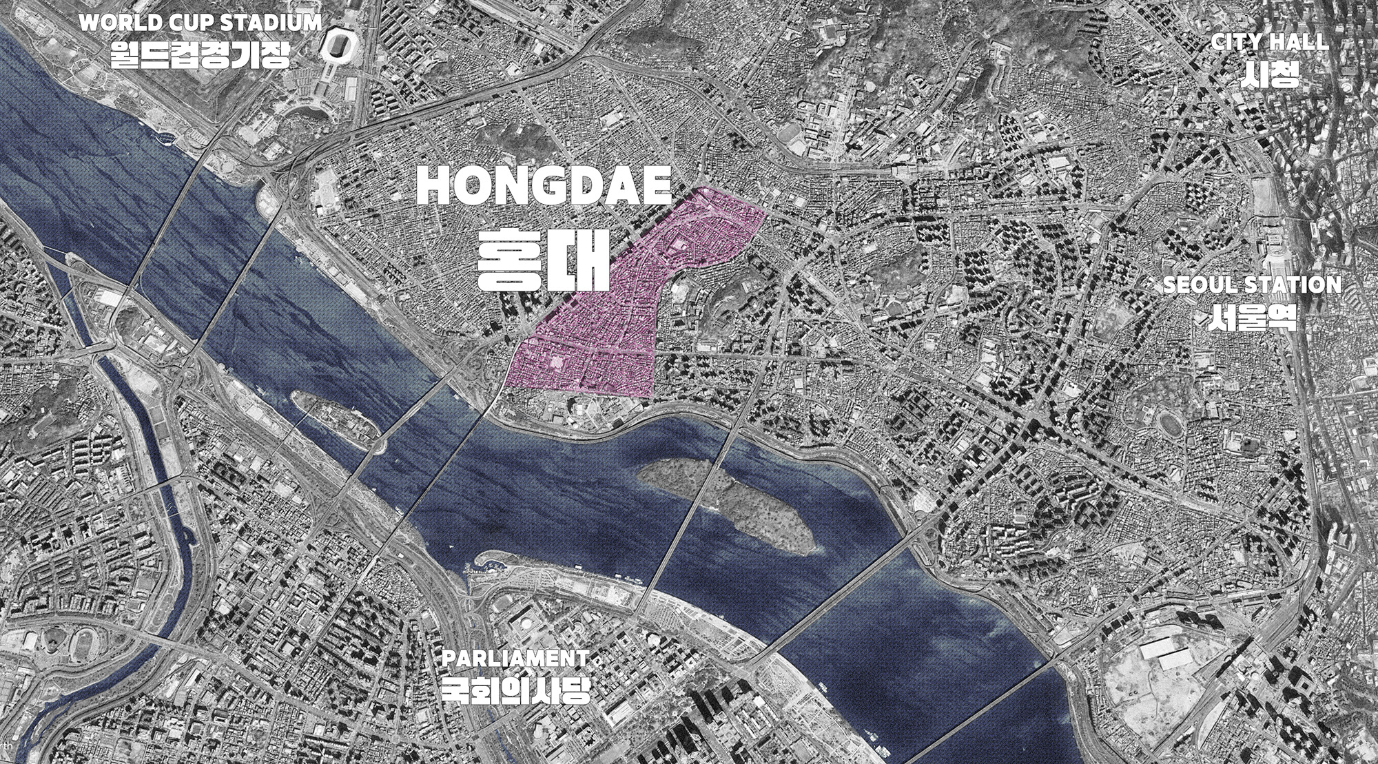 In Hongdae, the built environment changes rapidly due to commercialization, gentrification, and government-led beautification projects. Structurally, many buildings have been expanded, repurposed and rebranded, but show clear signs of their past. Socially, the neighborhood is a hive of activity. The narrow street grid, irregular floor heights, and “extra-legal” additions all create an urbanism of continuous discovery and give Hongdae its distinct charm.